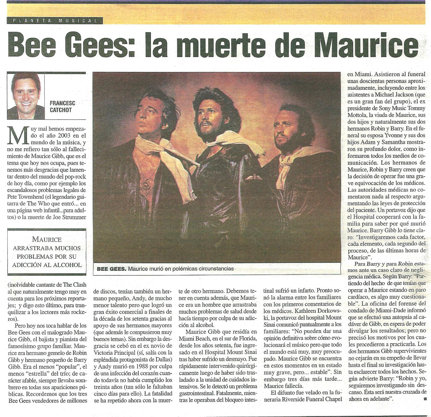 - Bee Gees: "La muerte de Maurice"